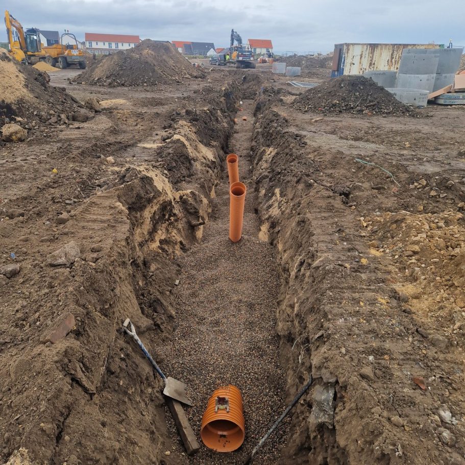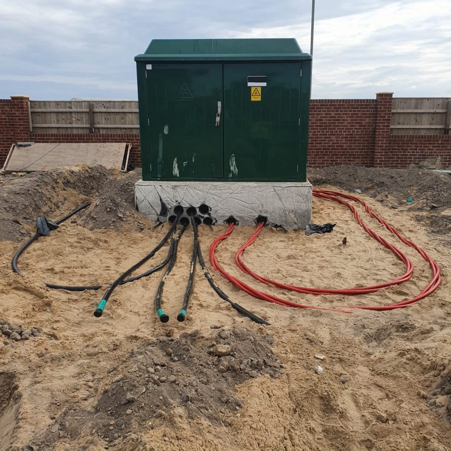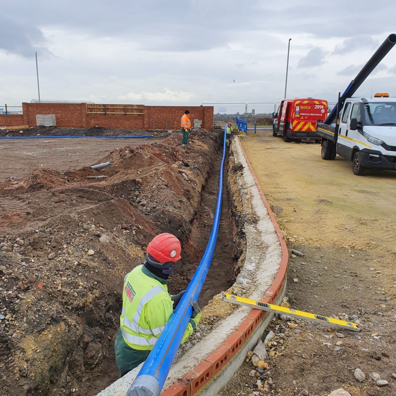 We delivered the full site infrastructure package including adoptable highways and drainage (sections 38 and 104). This was followed by the installation of the mains services - water, gas, electric, media.