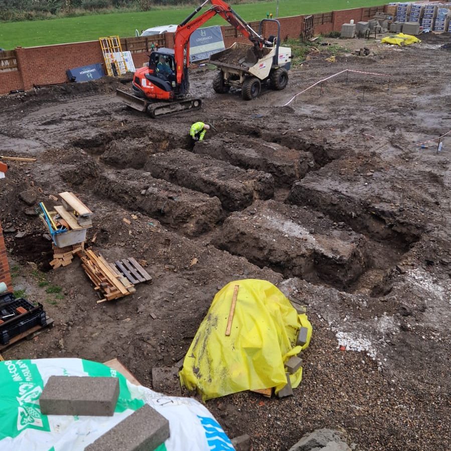 The photos below show real on-site progress during the construction of our 69 home development, from groundworks through to completion.